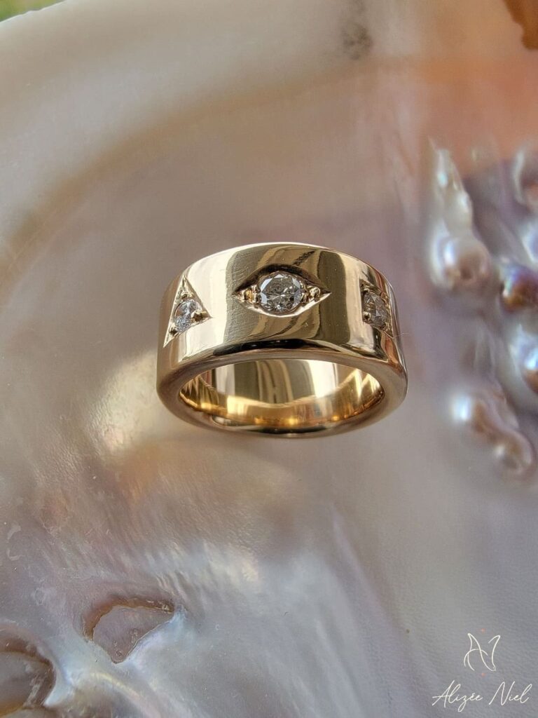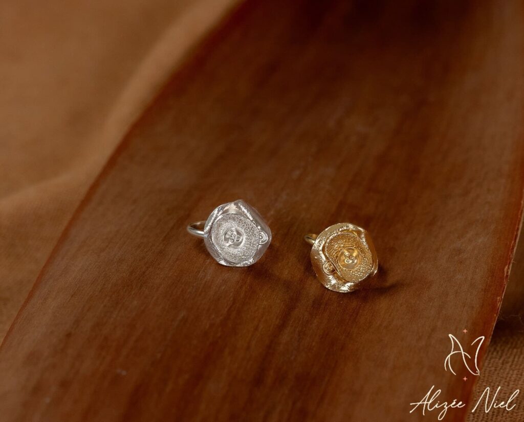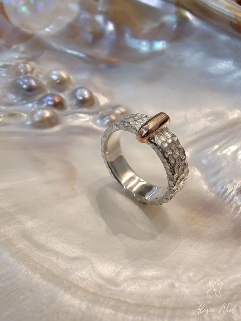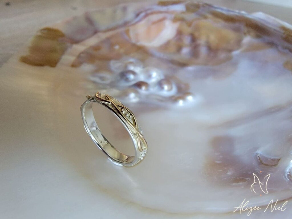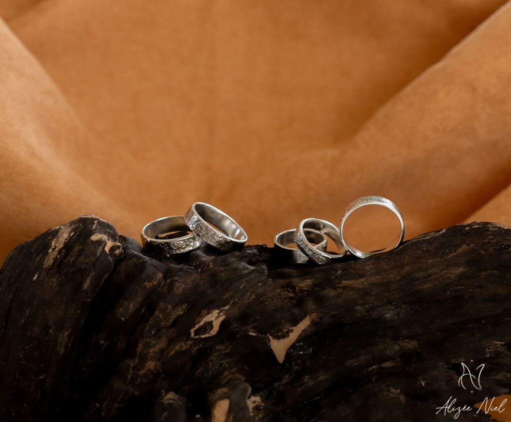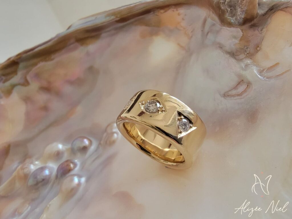 Du martelage à la fusion, en passant par le fraisage et la réticulation, nous jouons du chalumeau, du marteau et des bouterolles afin d’apporter relief, courbes et volupté à vos bijoux.